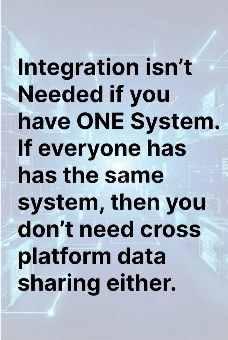 Vendors hate single-system thinking because their business model depends on selling yet another best-of-breed point solution. They tell you "integration is easy these days" while quietly raking in recurring revenue from connector maintenance, API call volume, and professional services to patch the gaps.