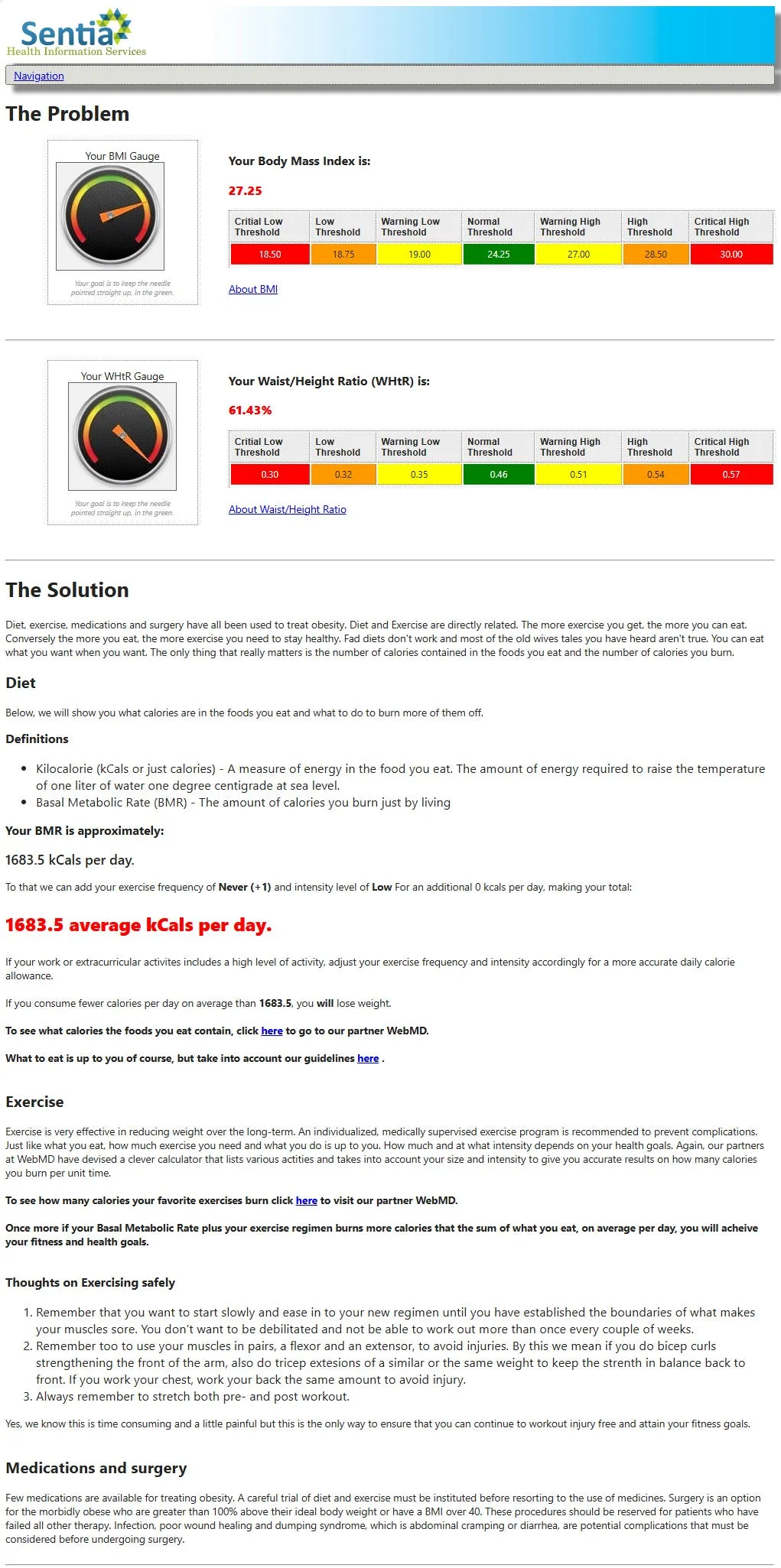 At Sentia, we advocate for solving the health insurance problem by completely automating the health insurance process. We will provide the Electronic Medical Record (EMR) for your doctor and when he documents a procedure, we will pay him for it in real time. That should eliminate about half the cost of health insurance by itself, in lieu of a $10 per month data management fee. Of course the insured still has to pay for the actual incurred risk, but that half number is real and we can save you that. That isn’t really what we are here to talk about today though. Clearly it is possible to live like the average citizen in the 37 OECD countries and have our avoidable death rate equal theirs instead of being 1/3 higher. Here is where the EMR comes in. Since we know everything that your doctor knows, including all your measurements and blood work, we can automatically generate relevant articles for you to follow and be healthy. Since we provide these articles, we can offer a small discount for even reading them. These articles are presented in a problem/solution format with a “temperature gauge” showing how close you personally are to having problems. Then a comprehensive solution, tailored to you individually, is presented. Here is an example: